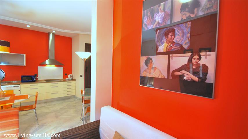 A cozinha é muito prático, "estilo americano" é adjacente à sala de jantar onde a equipe de Living-Sevilla Apartments, recebe-o com uma pequena selecção de chás e cafés. Ele está totalmente equipada com todos os dispositivos necessários para você preparar e saborear a sua própria comida. Um grande frigorífico com capacidade de alta é o parceiro perfeito para qualquer um que nos acontece mais do que um par de dias, por isso, é equipado com máquina de lavar roupa, com programas para todos os tipos de fogão roupas, digital, com 4 fogos, chaleira (Kettle), torradeira de café, microondas grill, juicer, liquidificador, passar roupa, louça, copos e talheres para todas as pessoas, assim como, potes panelas e utensílios em estado de impecavelmente mantido, tornando esta cozinha, um dos melhores equipamentos você pode encontrar em apartamentos .